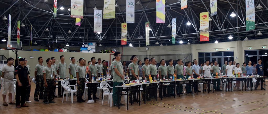 教师节晚会演出在自护组教官热情洋溢的开场舞《打谷子》中拉开帷幕,动感的节奏和形象的劳动场景,瞬间“燃爆”晚会现场。接着综合组教官三句半相声表演《夸夸our 5s camp》,在幽默风趣中夸赞着“最美营地人”,随后自理组教官献上专业的舞蹈《苦行僧》引来阵阵掌声,还有供应处、餐饮组阿姨表演的越剧歌曲《手心手背都是肉》。灯光一暗,这时最温馨的场景正在上演,原来是营地为9月份过生日的四位员工准备了集体生日,他们中间有的是洞桥营地创建以来就一直勤勤恳恳工作的攻坚力量,有刚刚入职的洞桥营地的新生代力量,大家欢聚一堂,为这个特殊的节日庆生!