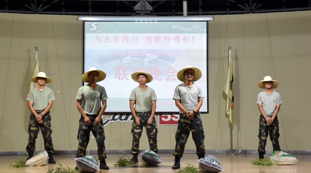 随后自强组教官们自编自演的小品《军训那些事》记录了营地教官平凡又辛苦的岗位上坚持严爱育人、温暖感恩的师生情,有欢快、有泪水、有感动……整个晚会以“平凡、感动”为主旋律,参与演出的员工们一改往日的“严肃、拘谨”,多才多艺的他们在舞台上“活灵活现”,台下的观众鼓励掌声不断,这是属于营地温暖的大家庭的狂欢,这是营地员工最难忘的教师节!