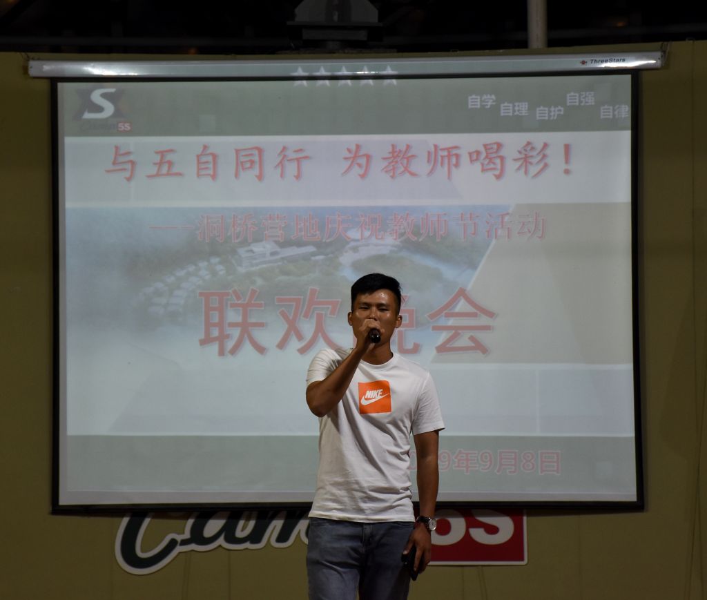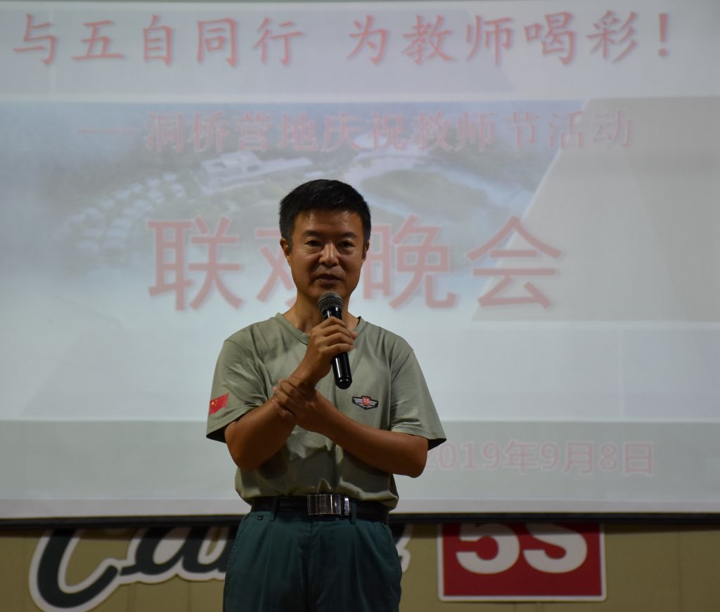 201998日,洞桥营地“飞碟训练馆”里传来一阵阵欢快的歌声……原来他们是在隆重庆祝第35个教师节!活动中心副主任刘如一参加了庆祝活动。