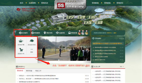 3.用户登录后回到“首页”,点击“活动预约”,选择“双休亲子营”进入活动预约详情页。