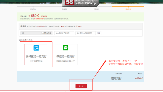 7.勾选“洗衣机”和“充值”,点击“订单确认”选择支付宝,点击“下一步”,出现二维码,扫码支付成功后即为活动预约成功,预约成功后在“会员中心”查看详情。
