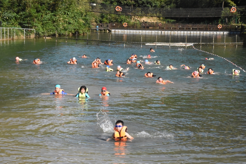野外游泳场位于118高地和106高地之间的水域,是营地开展野外水上运动的军事体验类活动场所。 本活动设施实行开放管理,可同时容纳150人参加活动,队员可在领队组织下按照活动项目操作流程进行活动体验。