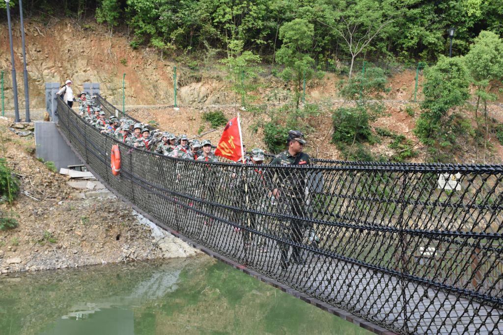 大铁索桥位于营地106高地和118高地之间,横跨营地坂坞里水库,桥宽2米,长35米。桥面铺防腐木,整座桥是构成两座山包之间的水上交通要道。 本活动设施实行开放管理,夜间禁行,营员可在教官、领队组织下安全通行。