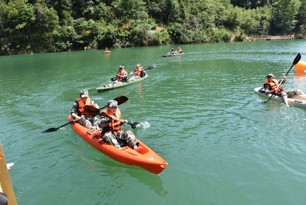 划船渡河是水上运动项目,在营地的浮台码头, 主要活动设施是皮划艇,有单人艇和双人艇两种,共计30艘,是营地开展国防教育的军事体验类活动设施。 本活动设施实行开放管理,可同时容纳50人参加活动,队员可在领队组织下按照活动项目操作流程进行活动体验。期待你,不惧困难增勇气,勇于挑战。