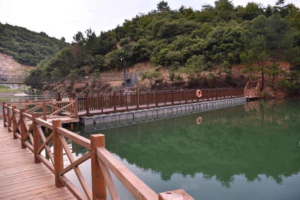 浮桥位于营地106高地和118高地之间,桥宽2米,长35米。浮体由柏油桶经防腐处理制成,桥面铺设防腐木,整座桥梁浮在水面上,是106高地和118高地之间的交通要道。