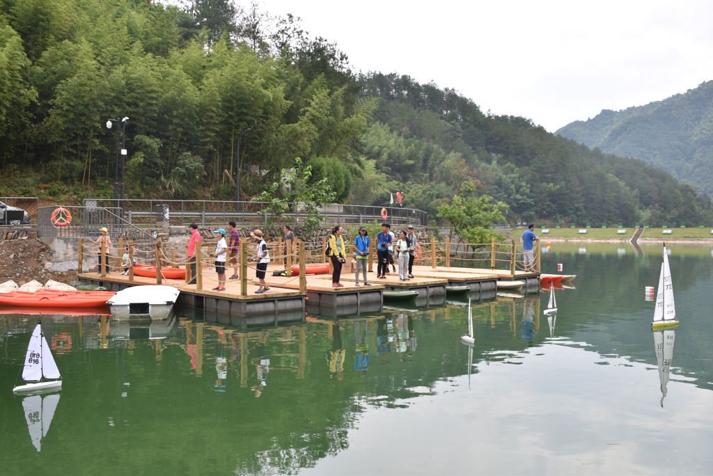 浮台位于营地东侧水域,面积120平方米,浮台主体由柏油桶经防腐处理制成,桥面铺防腐木。浮台西侧建有码头,是开展皮划艇体验项目的活动配套设施。