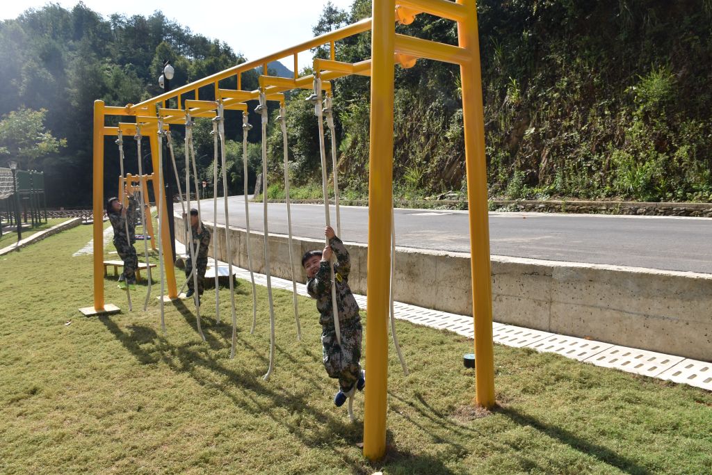 双臂攀绳位于练武场内,设施主体长6米、宽1.2米、高3米,是营地开展国防教育的军事体验类活动设施。 本活动设施实行开放管理,可同时容纳6人参加活动,队员可在领队组织下按照活动项目操作流程进行活动体验。期待您不惧困难增勇气,全力冲关求进取。