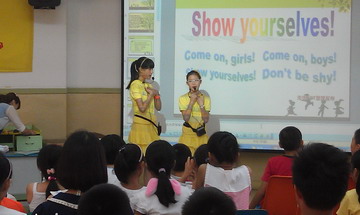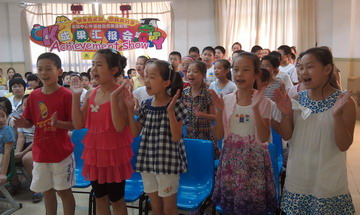 又是一年盛夏,又是一年语音挑战营收获的季节。今年活动中心八个语音班,280余位小营员,过五关斩六将,经历了语音集中训练、口头笔头全面测评,迎来了最后的汇报展示时刻。盛夏的室外热浪滚滚,活动室内一样热火朝天。小营员们为这次汇报活动做足了准备,有的团队合作,有的全班齐上,有人一展歌喉,有人舞姿翩翩。Believe yourself, Challenge yourself! 相信自己,挑战自我!牢记着语音挑战营的口号,小营员们一改平日不敢开口的羞涩,Tongue twister说出来,hip-pop摇起来,汗水中学习,欢乐中收获。Never say never!永不言败!