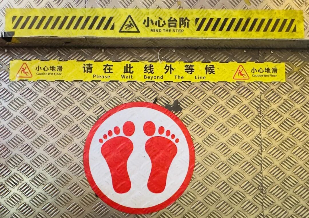 细心点的小伙伴们可能已经发现了,自国庆节之后,“太空漫步”内的等候区地标标识已经换新了,由之前的阿拉伯数字换成了“彩虹色标识”,各站位颜色分别为红、橙、黄、绿、棕、蓝、紫,其中棕色是为了方便区分所设,将原先的青色换为了颜色更突出的棕色。