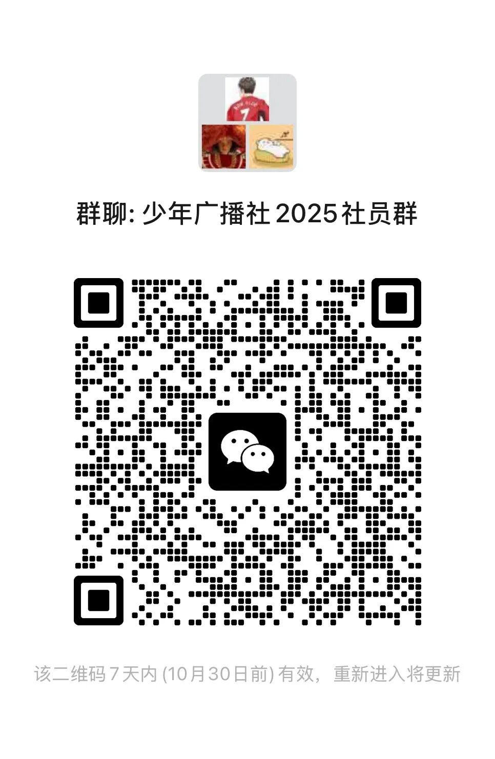 请以上(四至六年级)一二三等奖名单中的所有孩子家长扫码加入杭州少年广播社(面向四至六年级)2025新社员微信群。