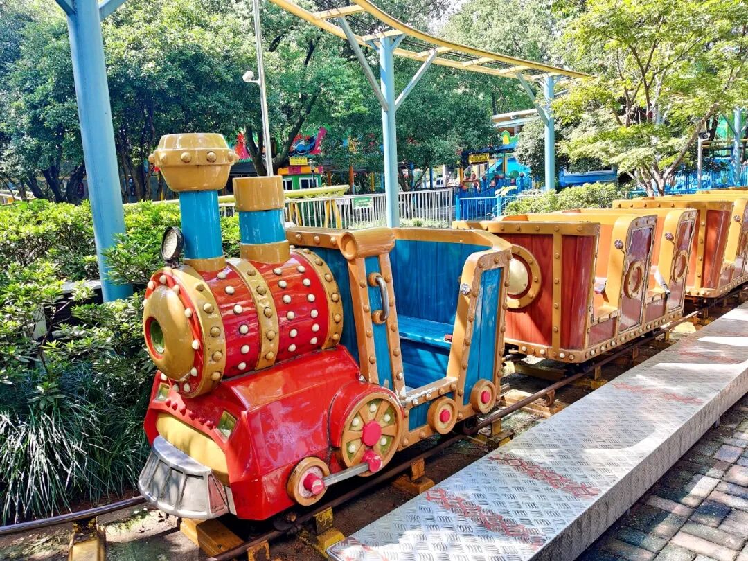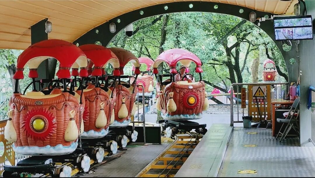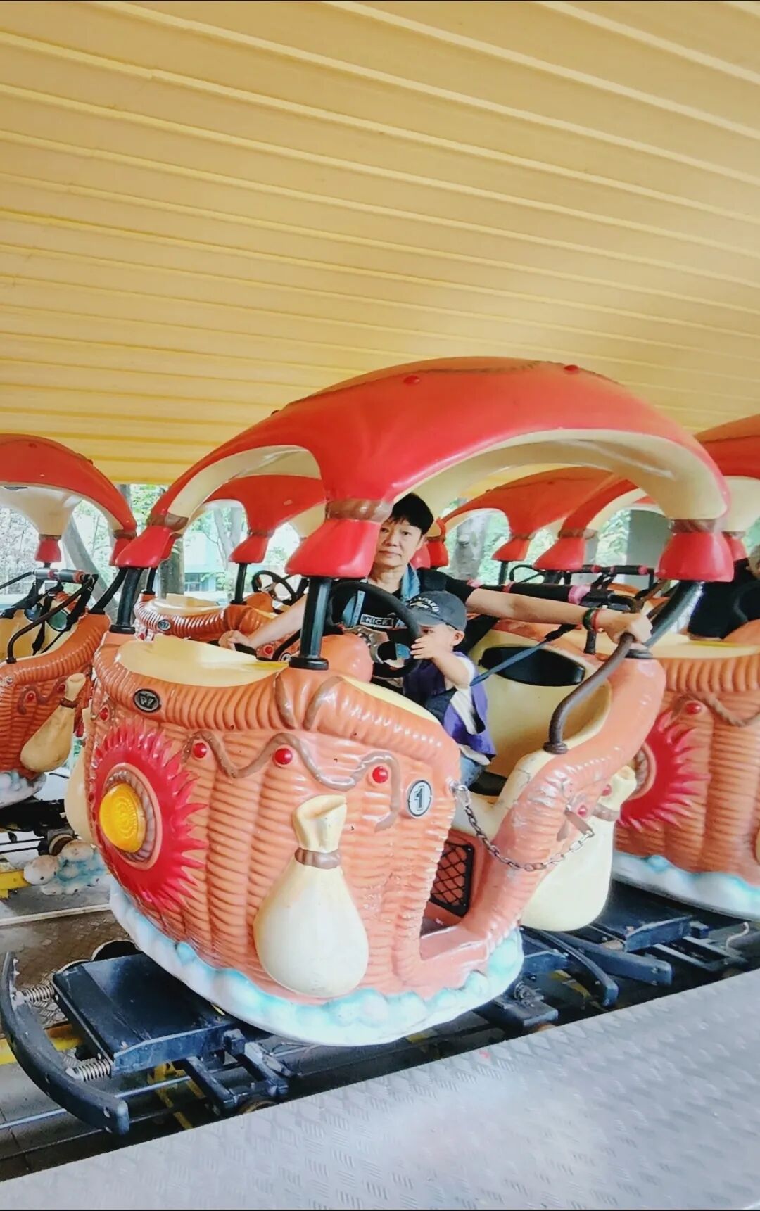 慢节奏的“空中漫游”,祖孙并肩坐,一起俯瞰乐园美景,轻松又惬意。