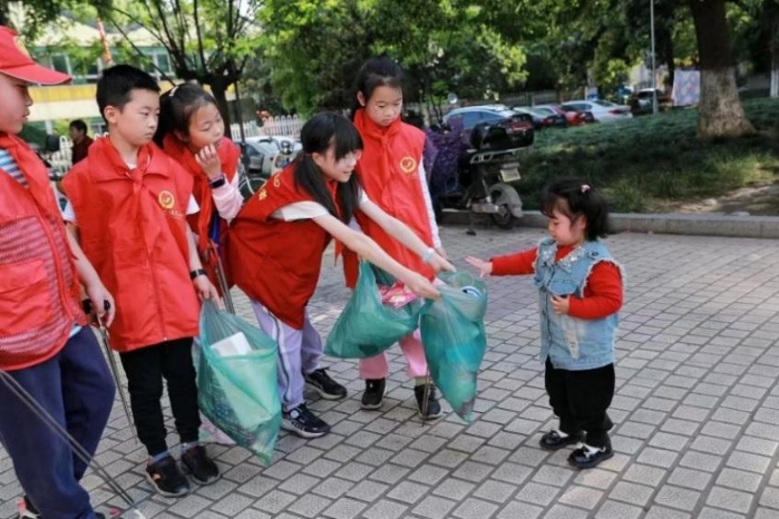 他们还一起走进社区,用实际行动践行绿色环保理念,宣传垃圾分类知识。不少小弟弟和小妹妹在红领巾双语志愿者的的引导下,主动将垃圾投放到正确的垃圾袋里,通过小小的行动,唤醒了大家的垃圾分类和绿色环保意识。