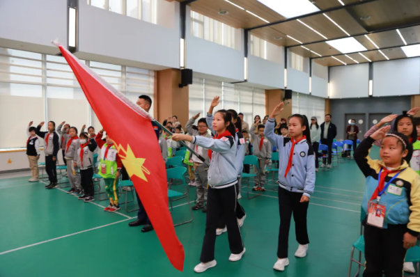 活动现场,出队旗、敬队礼、唱队歌,鲜红队旗迎风展扬,嘹亮歌声响彻场馆,少先队员们以标准的队礼、坚定的神情,深刻体悟身为组织一员的责任与荣光,组织归属感在庄重氛围中悄然升腾。