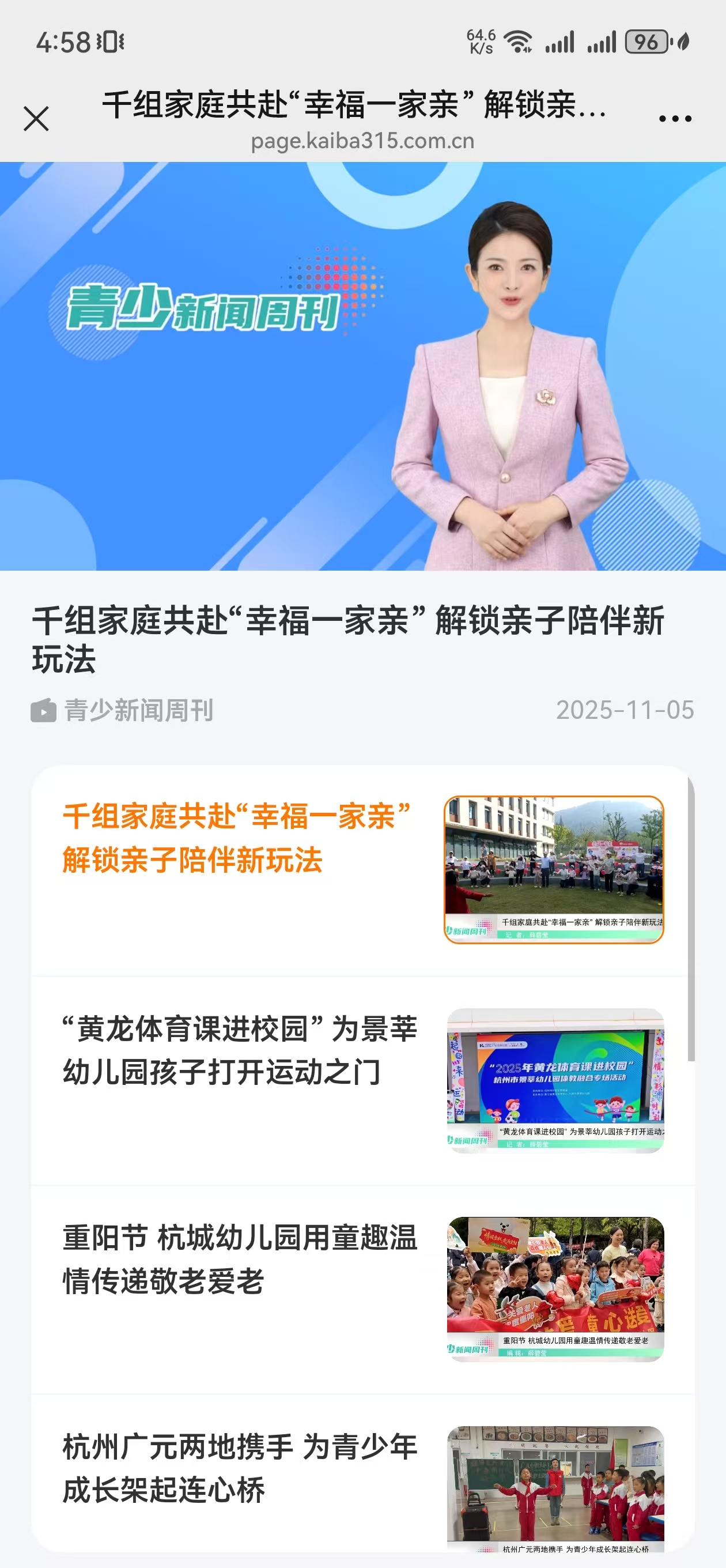青少新闻周刊电视频道报道了杭州市第十一届“幸福一家亲”活动
