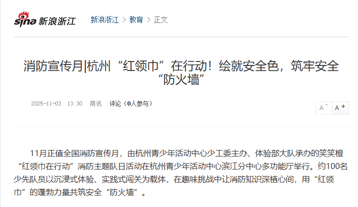 新浪浙江、每日商报报道笑笑橙“119消防宣传月”活动