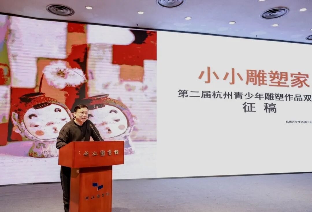 开幕式后,“杭州市青少年美育浸润艺术之约”主题活动在浙江图书馆二楼报告厅举行。活动由分会秘书长徐帆主持,分会创作辅导委员会副主任黄华高、第十二届“发现杭州小画家”承办方应佳辰及“留白不设限”策展人张晨昕分别介绍了第二届“小小雕塑家”赛事、第十二届“发现杭州小画家”赛事、美术部特色活动“留白不设限”。三位主讲人都通过此次活动分享,表达了开展的活动或是赛事,均旨在通过沉浸式、体验式的艺术实践,激发青少年的创造力,让美育真正“浸润”到每一位学子的成长中。随后,由杭州市美术家协会青少年分会副主席夏琳为新聘的八位委员颁发聘书,欢迎他们加入分会的大家庭。最后,由分会主席高甬春总结2025年分会工作以及展望2026年计划,他说:“分会在2025年青少年美育普及、艺术创作引导及各类主题赛事组织方面取得的成效,有效激发了青少年的艺术热情与创造力。展望2026年,将持续深化美育实践,凝聚分会各方力量,拓展多元艺术交流平台,分会将更多维度地助力青少年的美育成长。”