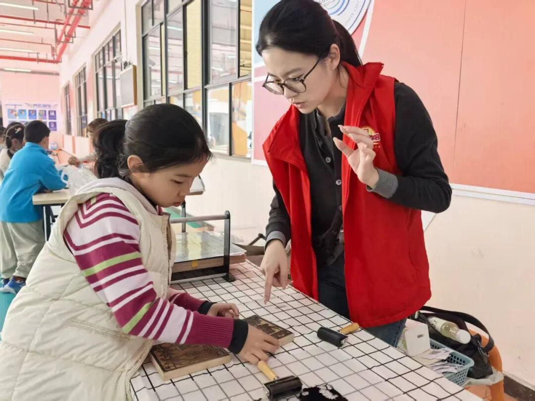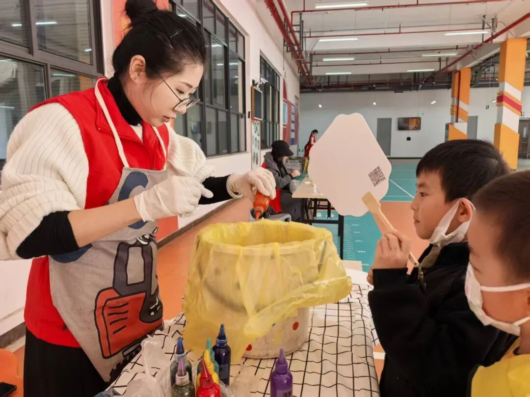 本次活动延续游园会的形式展开,设置了漆扇雅绘、扭扭棒手工体验、版画印刷体验、海绵膨胀实验室等多项富有创意的艺术活动。在专业教师的耐心的指导下,孩子们亲手制作漆画清风扇、扭转变幻出可爱的小白兔、体验传统版画的印制过程,创作出可玩、可看、可用的生活物件。