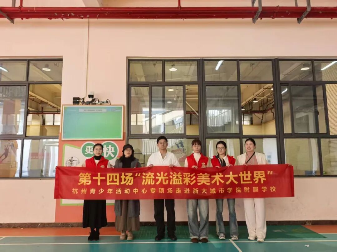 第十四场“流光溢彩美术大世界”杭州青少年活动中心美术部流动少年宫专项场,于2025年11月14日下午走进浙大城市学院附属学校,将优质校外美育资源精准送达城北区域,为孩子们带来一场融合传统与现代的艺术体验。