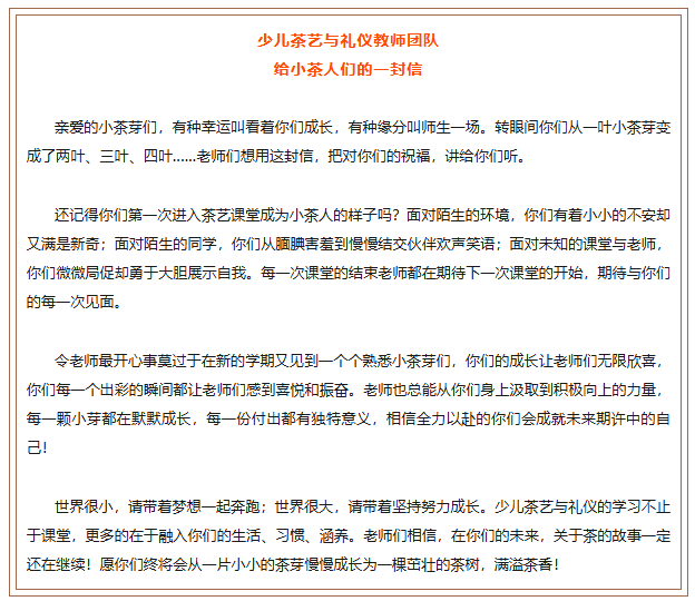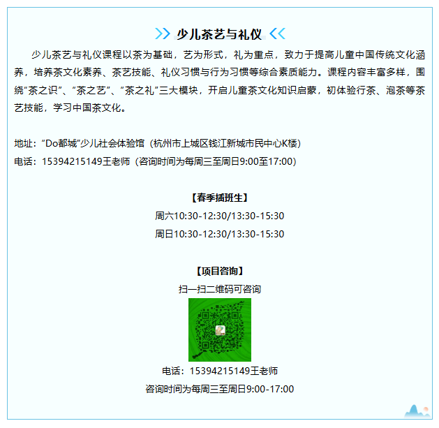 茶,作为文化的载体,既承载了丰富的文化内涵,更具体化了文化的美学实践,以及待人接物的道理。“Do都城”少儿茶艺与礼仪项目秋季特别活动,一场银杏茶会优雅开启。茶会由小茶人们独立进行茶会策划、会场布置、活动开展,感受美好茶生活,展示自己风采。