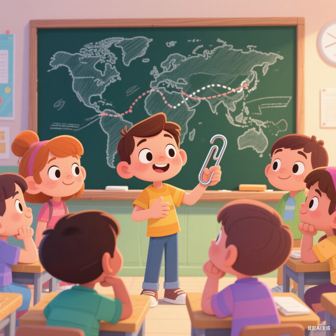 终于,老师不再卖关子,揭晓了答案——居然是一枚普普通通的回形针!大家先是一愣,随即满是失望的叹息声。不过,老师却笑着说,这枚回形针背后,藏着一个动人的故事呢。原来,有个叫凯尔的人,没有稳定工作,却梦想拥有一栋别墅。他凭借着坚定的决心,不断尝试,用这枚回形针开启了奇妙的交换之旅,最终真的换到了别墅。