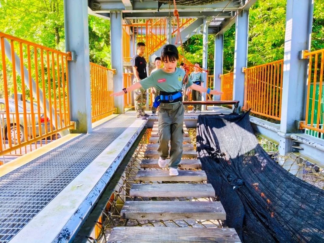 暑期,杭州(国际)青少年洞桥营地组织开展“红领巾奖章”特色章(“国防章”“劳动章”“社会实践章”)争章主题三日营活动。