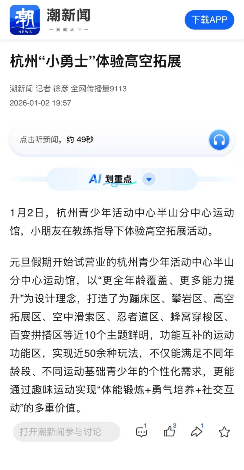 潮新闻报道杭州“小勇士”体验高空拓展