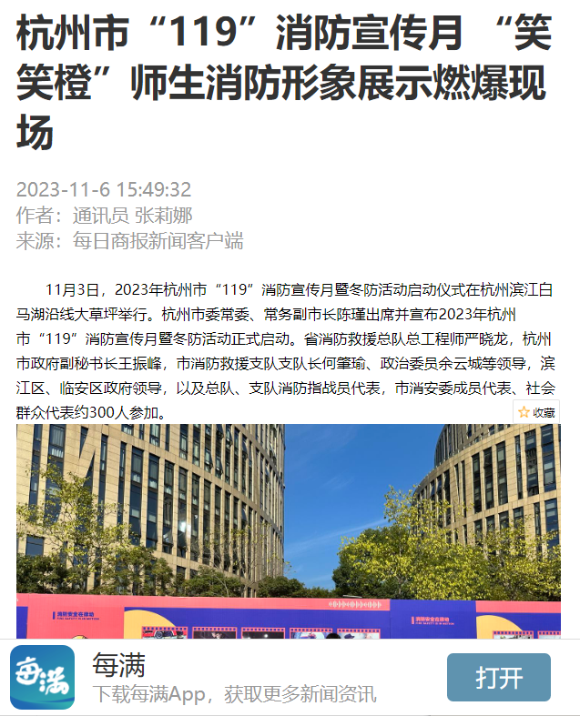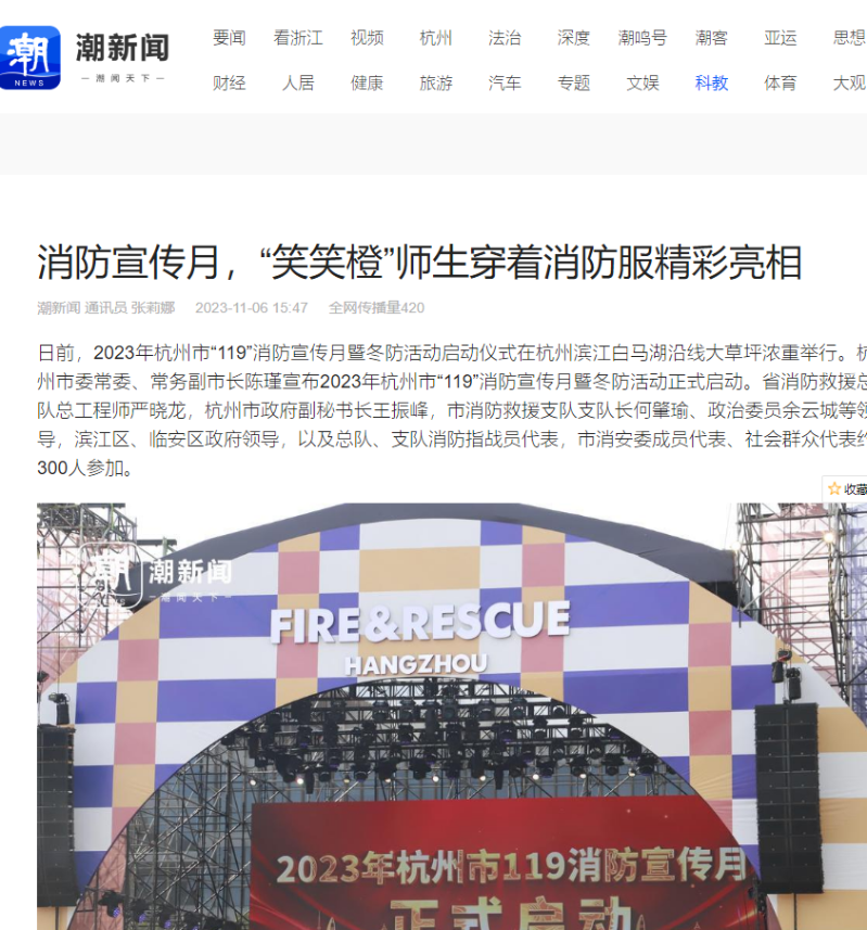 潮新闻、凤凰网浙江等媒体报道“笑笑橙”学员参与杭州市“119”消防宣传月