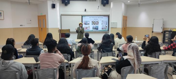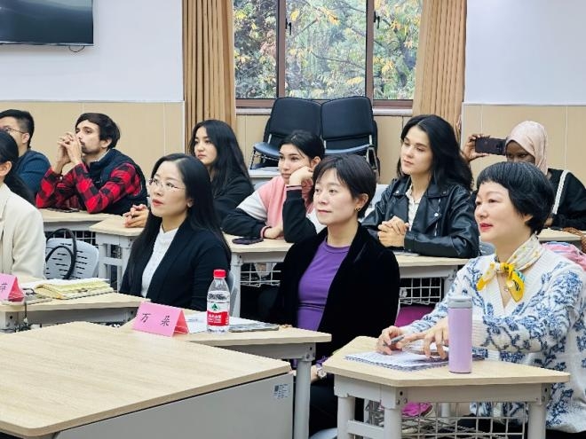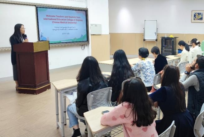 外语部副部长赵君萍向到访师生介绍了杭州青少年活动中心和外语部的总体情况。部门教学、科研及项目主管参会并向到访的师生介绍了部门的国际文化类课程和跨文化交流活动。外语部是培养具有爱国情怀、国际视野、全球胜任力以及中华文化传播力的新时代青少年的校外教育阵地,也是青年大学生社会实践基地,为在校大学生提供教学技能培训和实习岗位。同时也诚挚地欢迎浙江中医药大学国际教育学院的留学生们来参加部门组织的各种跨文化交流活动,更好地了解中华优秀文化,促进交流互鉴。
