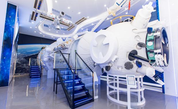 在按比例复刻的天和核心舱、中国空间站组合体模型里,聆听老师讲述中国航天“三步走”战略,探秘航天发射,了解航天员的太空生活。