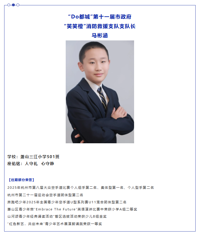 作为“Do都城”新一届消防大队长,我深感肩上承载的不仅是一份荣誉,更是一份沉甸甸的责任与信任。消防工作事关每位小市民的安全,我必将以敬畏之心履行这份光荣的使命。在接下来的任期内,我将与全体伙伴紧密协作。我们将以 “创新消防教育,守护童心安全” 为核心理念,努力设计一系列互动性强、体验感足、特色消防活动。让我们携手努力,把安全的种子播撒在每个孩子心中,共同营造一个更安心、更快乐的城市。