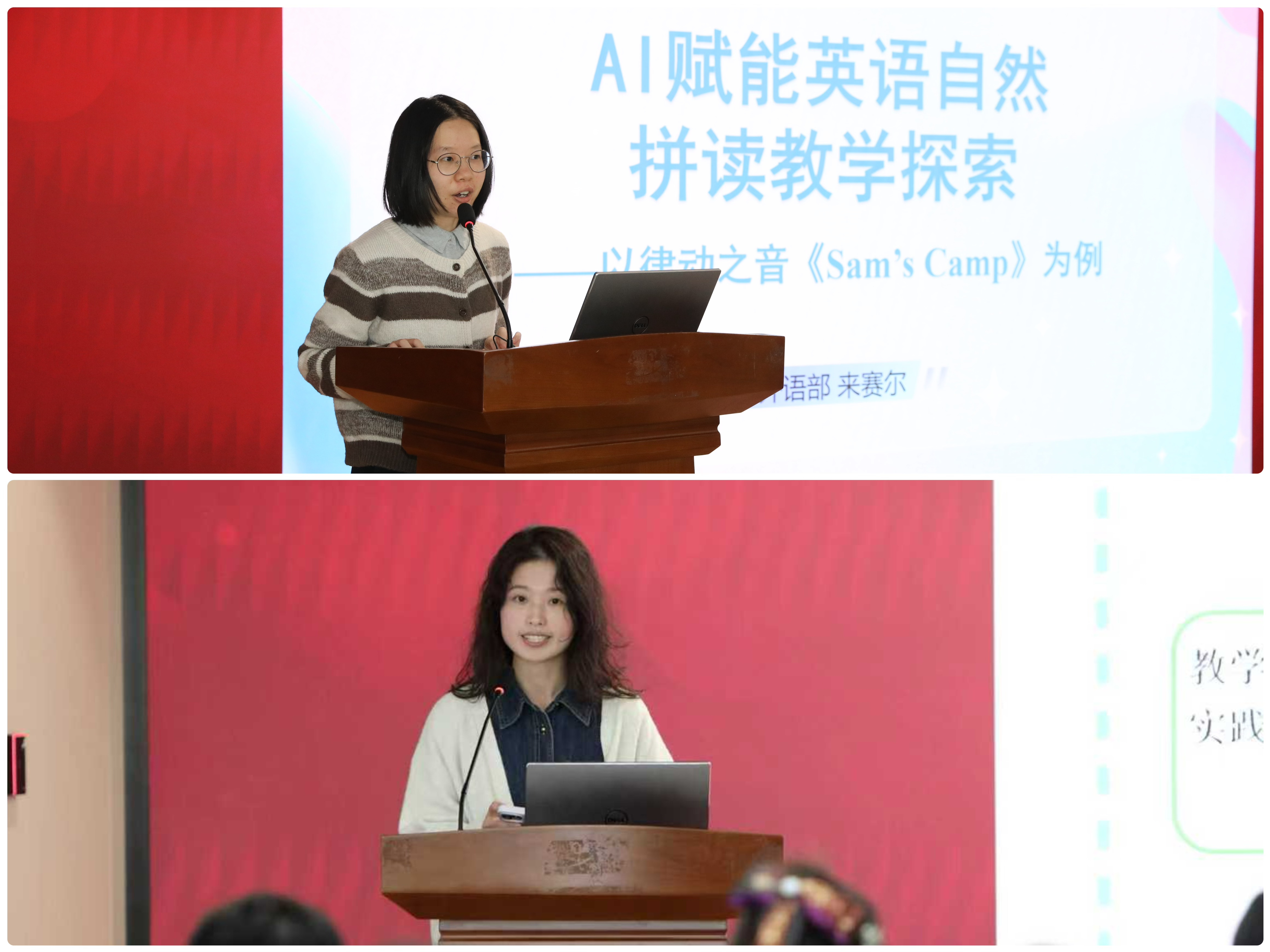 来赛尔老师围绕“双线融合·三感联动”,运用AI创设游戏化拼读情境,将语音训练转化为趣味活动,在基础教学中落实能力与思维培养。黄巧巧老师则以“All about tea”为例,展示AI与教学的深度融合:课前生成问题链、课中实现分层测评、课后借助智能体开展跨文化对话,体现AI作为“智能协作者”在真实语境中的多元支持。