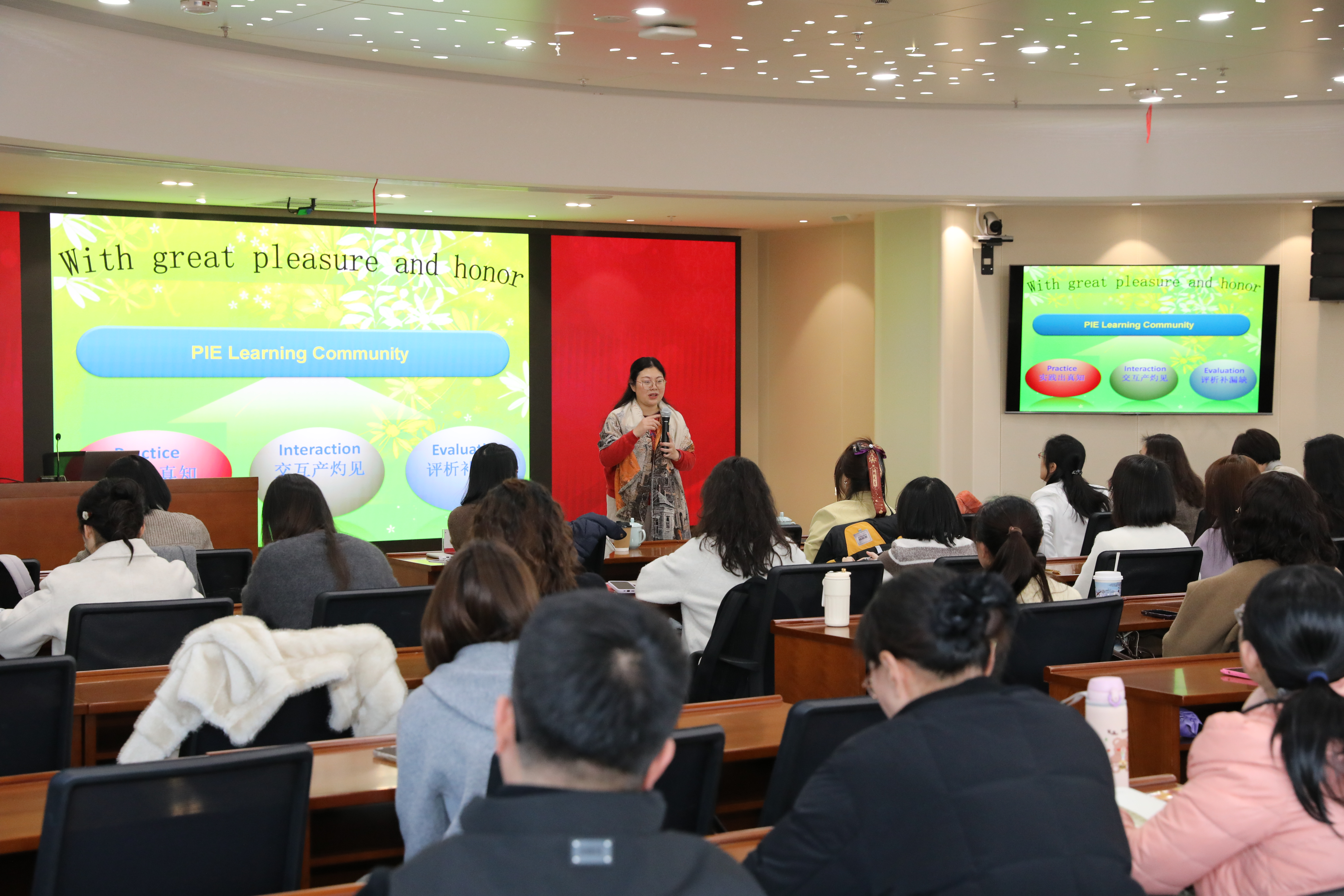 活动中,外语部获授外研社“中华传统文化英语阅读先锋示范校”牌匾,标志文化融合教学获专业认可。部门科研主管王赋华老师、教学主管张珊珊老师分别回顾2025年部门在课程优化、课题研究与AI教学融合等方面的成果,明确了AI师资赋能、AI教学嵌入、AI角色定位的策略,为教师提供清晰实施路径。
