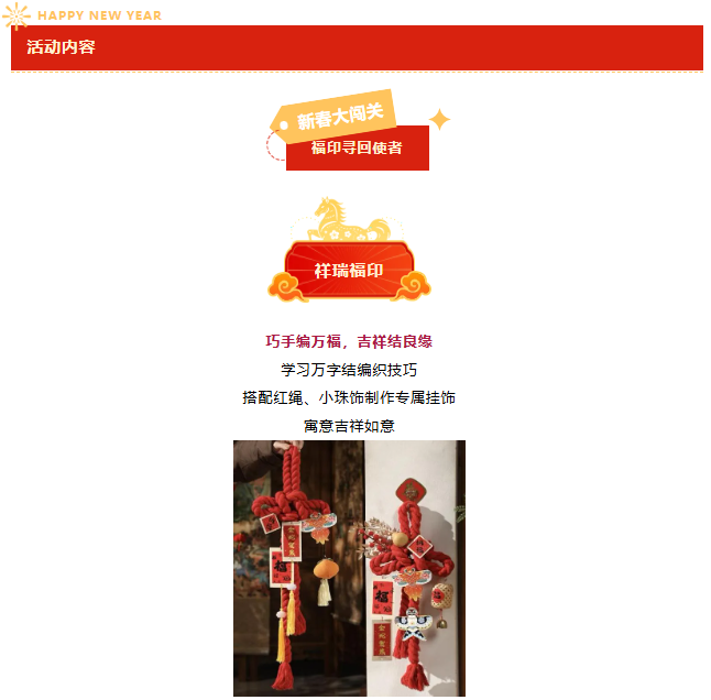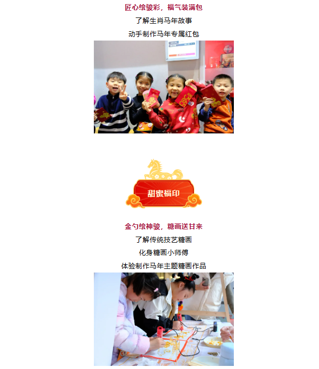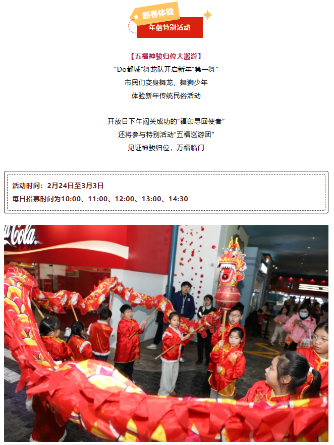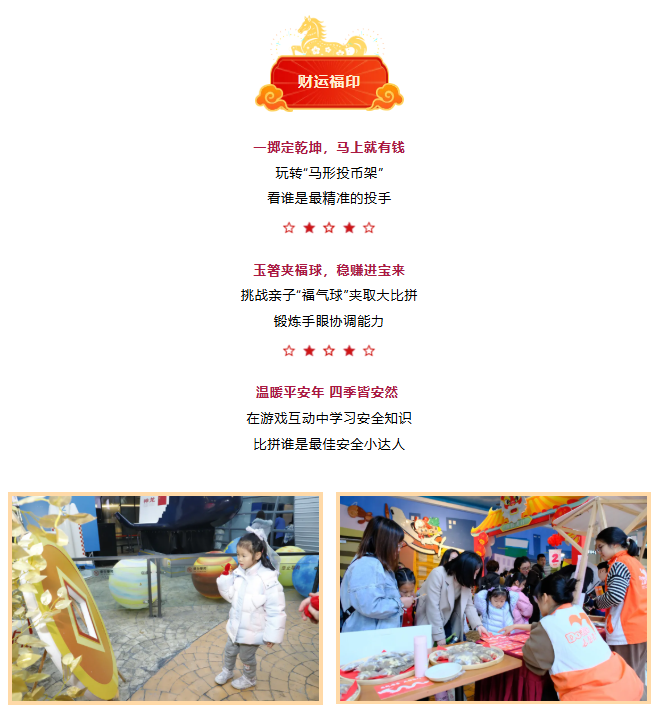 本次活动以“赶大集”为主题,打造沉浸式新年赶集体验。亲子化身“福印寻回使者”,挑战五大主题闯关,更有年货集市、新春大巡游等特色活动,让市民在参与中感受传统新年魅力,在欢声笑语中传承节日文化!