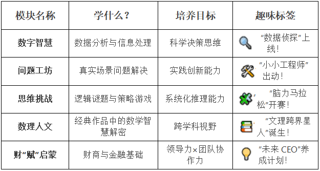为进一步扩大优质教育资源辐射范围,让杭州城北地区的小学三年级数学爱好者也能便捷享受到优质的数理启蒙与综合素质培养资源,杭州青少年活动中心文学部少年理学院延续20年匠心沉淀的课程体系,特于2026年春季在杭州青少年活动中心半山分中心开设“1+1”才智少年领航班。