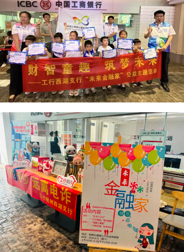 近期,杭州工商银行杭州西湖支行带着「未来金融家」公益活动走进 “Do 都城”,市民们在职业体验、游戏互动中认识货币,学习理财知识,了解反诈骗技能,变身"懂金融、会理财、能反诈" 的小小金融人。
