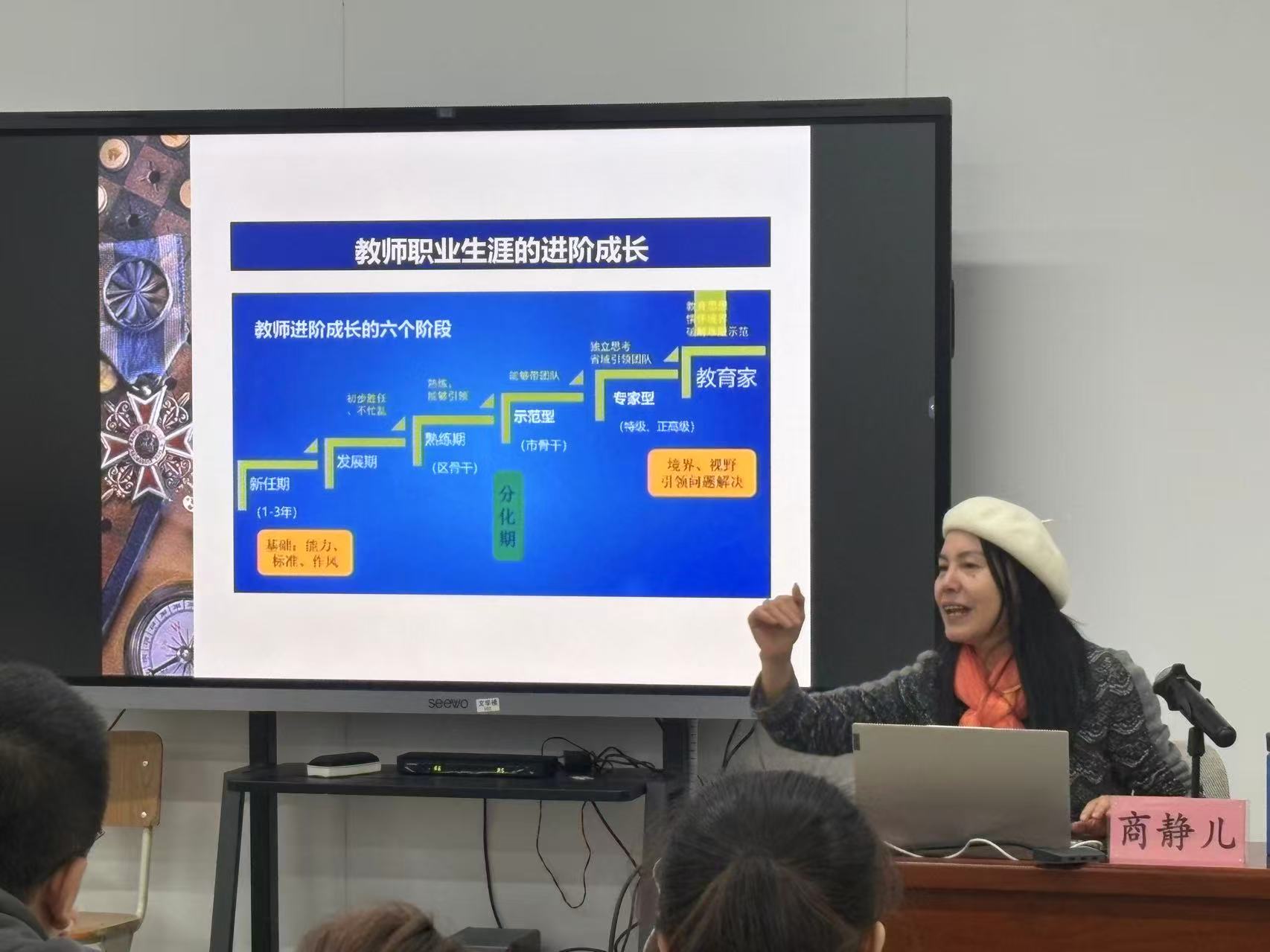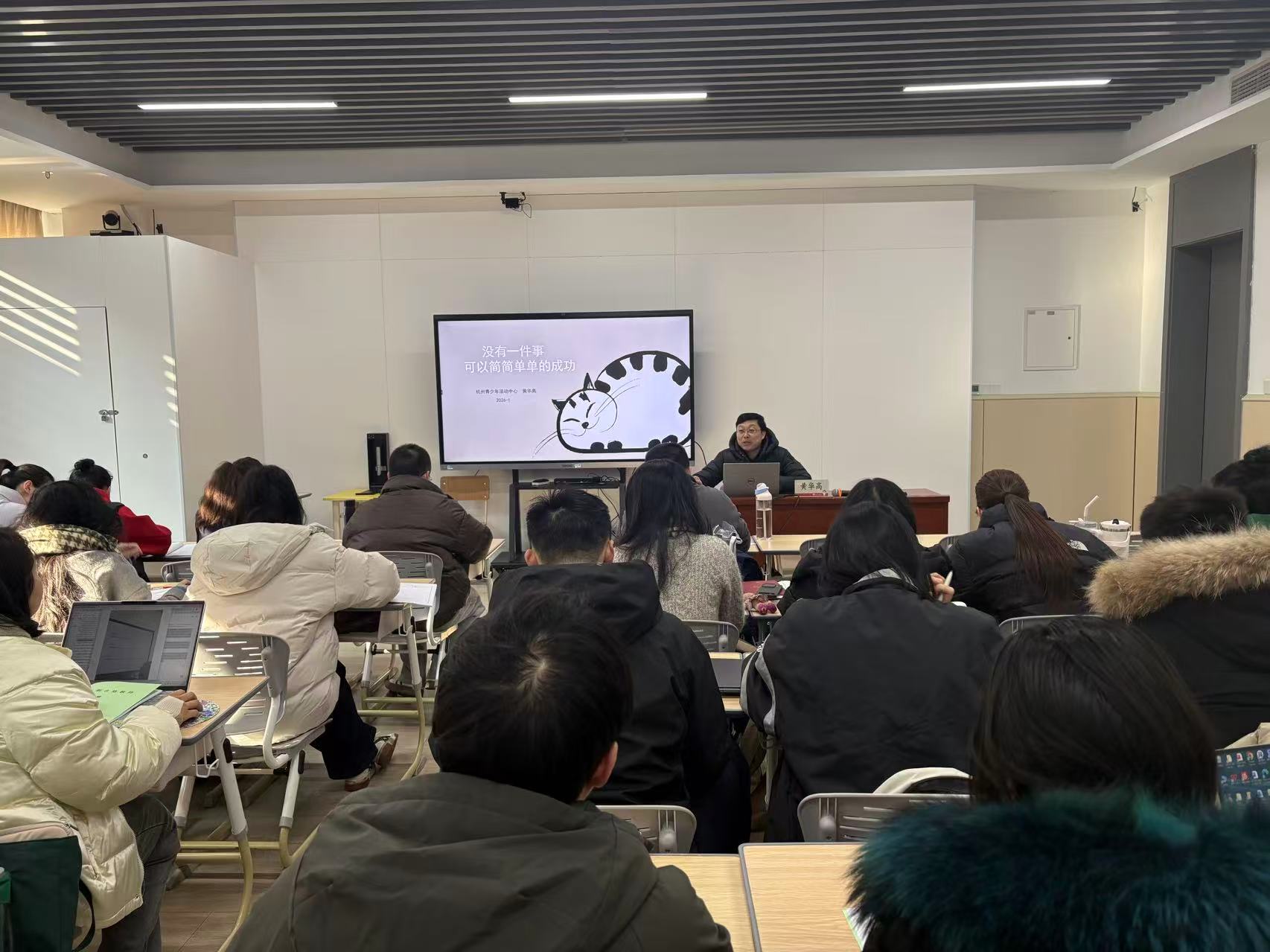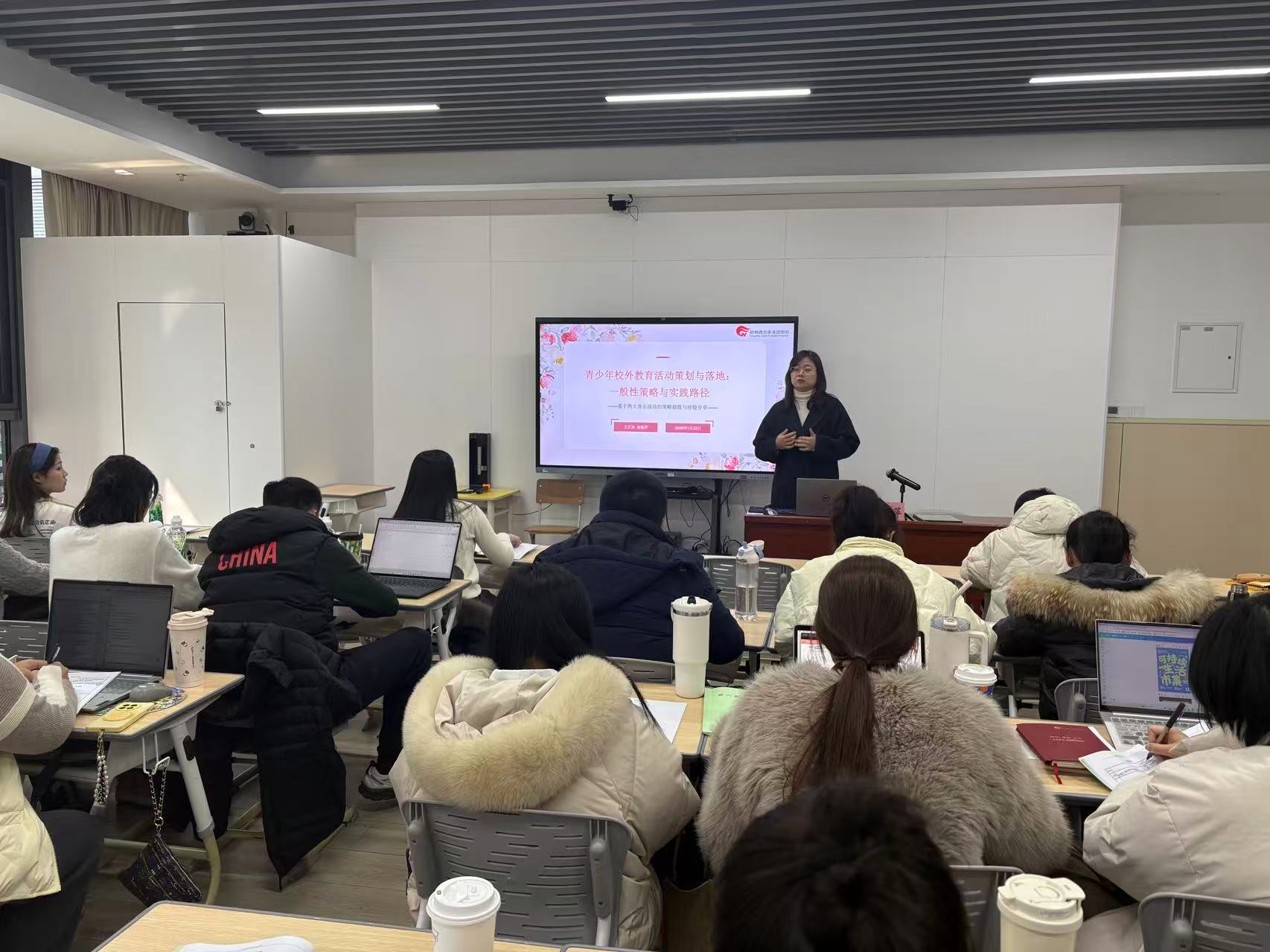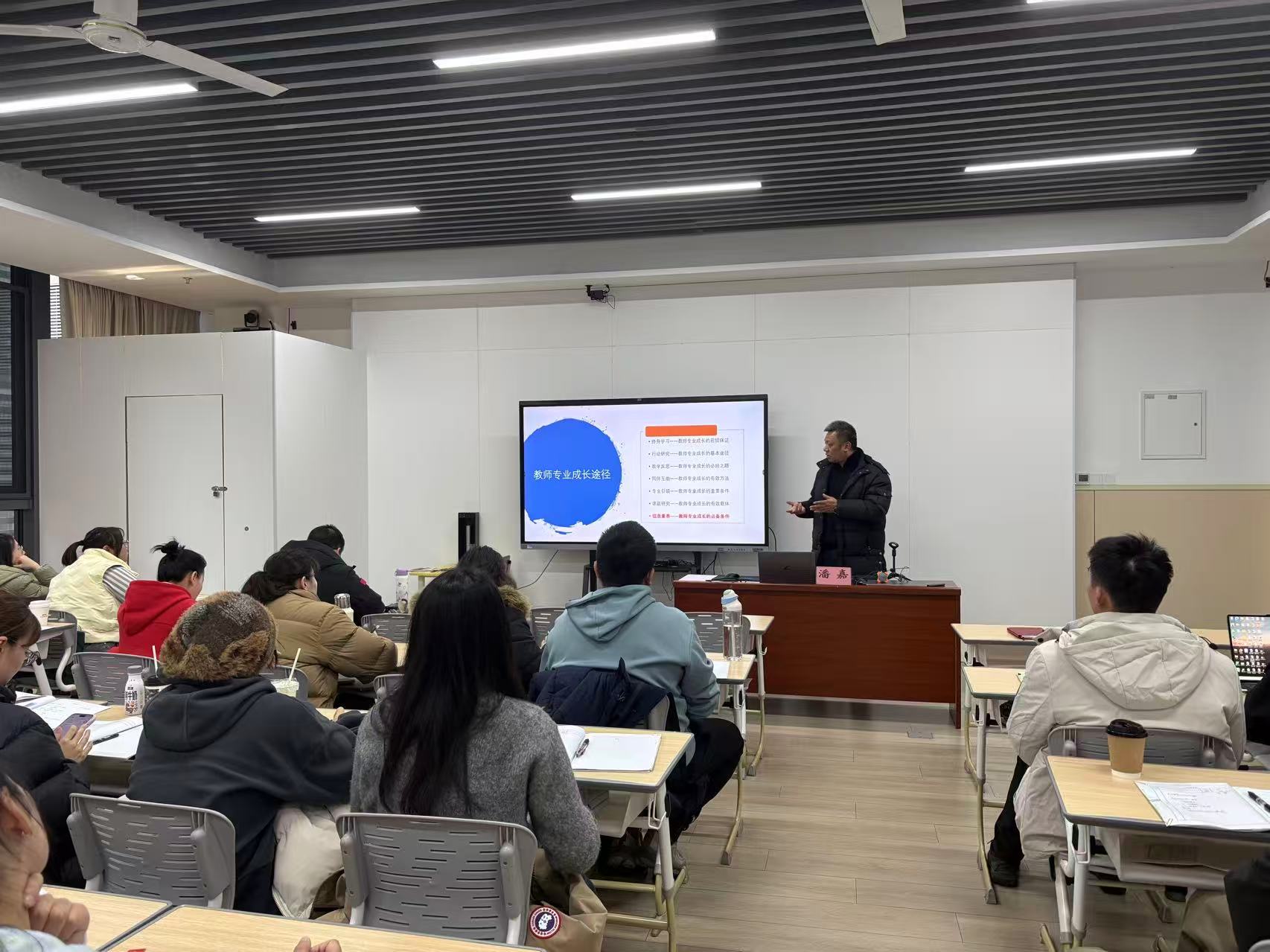 授课阵容兼具专业性与实践性,除特邀杭州市师干训中心首席专家商静儿授课外,中心办公室、教管处、人事处、研发处、团队工作处等职能处室的相关负责人、责任教师以及各业务部门的相关老师组成授课团队。其中,16 名首席教师(含培养对象)、一二期骨干教师及培养对象充分发挥梯度培养的“传帮带”作用,结合自身教学实践、班级管理、赛课磨课、活动开展及课程建设经验等“硬核干货”展开案例分享新教师快速站稳讲台、适应岗位需求提供了有力支撑。