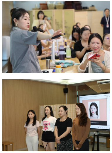 在 “肤色挑唇色” 环节,学员们热情高涨。踊跃尝试适合自己的口色颜色,最后李靖老师还教了大家如何快速的完成一个简单的盘发,学员纷纷表示非常实用。本次沙龙活动通过丰富的互动环节,让学员们深入了解了肤色与美妆的紧密联系,掌握了适合自己的美妆技巧。帮助大家在美妆的道路上少走弯路,展现出最美好的自己。
