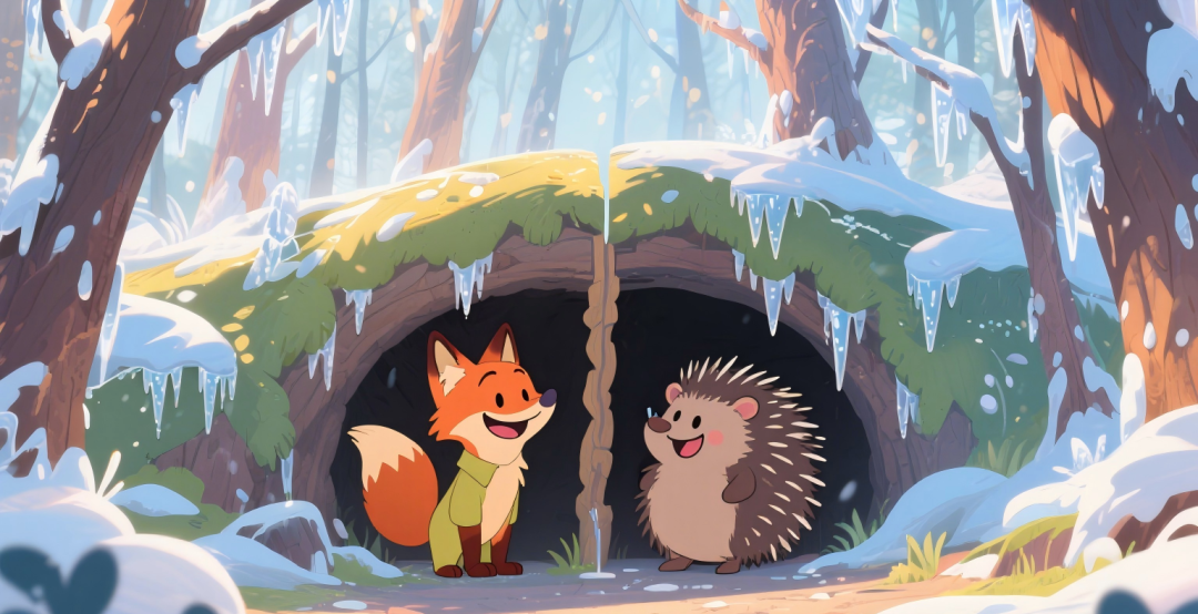 一天,刺猬堵了通风口,狐狸一气之下也把对方的食物藏了起来。两家几乎闹翻。直到冬天来临,洞里缺氧,狐狸晕倒,是刺猬扒开通风口救了它。