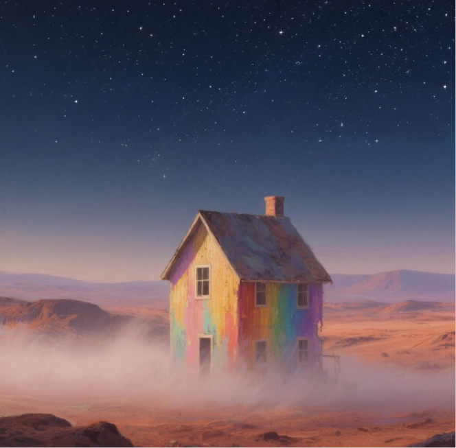告诉你个秘密,火星上的房子可有趣了,像一个个大号的泡泡糖,看起来软乎乎的还会变色,所以我把我家变成了彩虹色,就简单地取名为彩虹小屋。十年后的你还是那么喜欢五彩缤纷的颜色。我最喜欢家里的地板,冬天踩上去暖暖的软软的,像踩在暖烘烘的面包上,夏天则像踩在凉丝丝的果冻上面,舒服极了。