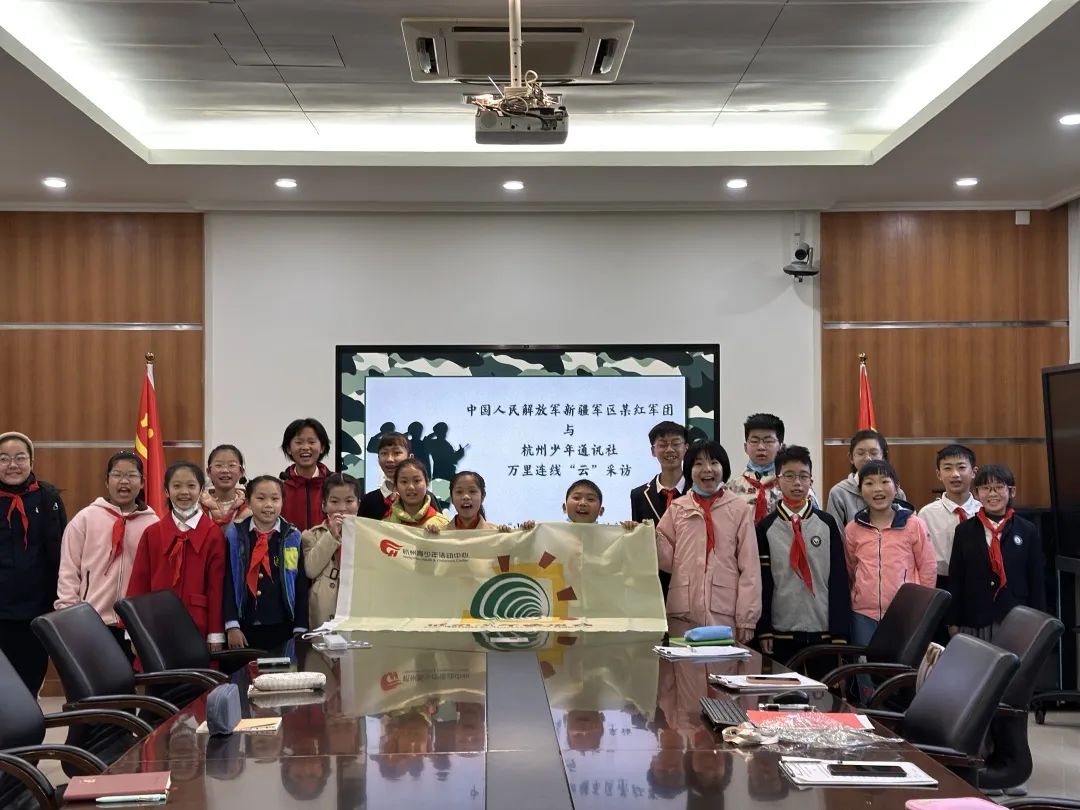 3月12日上午,杭州少年通讯社30多位小记者带着诸多期待早早来到杭州青少年活动中心办公楼会议室,与中国人民解放军新疆军区某红军团尖刀四连官兵开展跨越万里的“云”视频连线采访活动。
