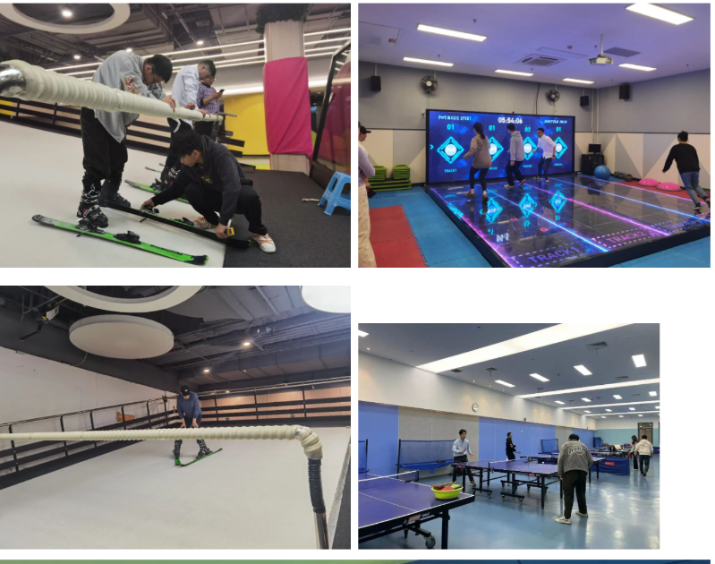 学员们纷纷体验了室内高尔夫、模拟滑雪、成人体适能、壁球、乒乓球课程。