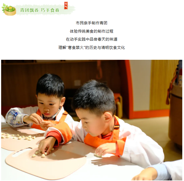 本次“杨柳青青”清明主题活动创设沉浸式传统文化体验,城市市民可以参与汉服诵诗、中药香囊制作、青团手作、投壶插柳等活动,在实践中了解清明习俗与文化内涵,感受传统魅力,实现文化传承与生命教育。
