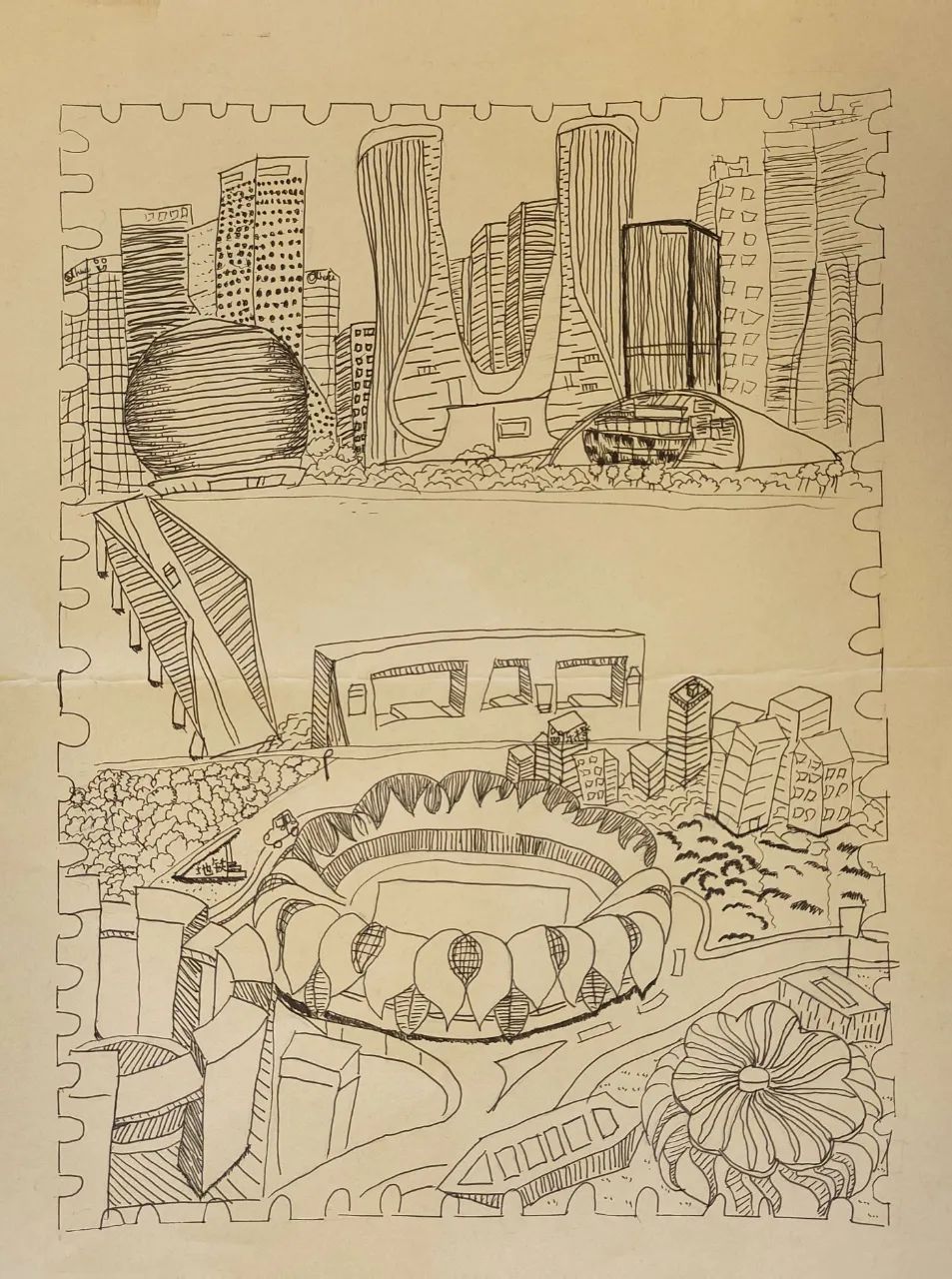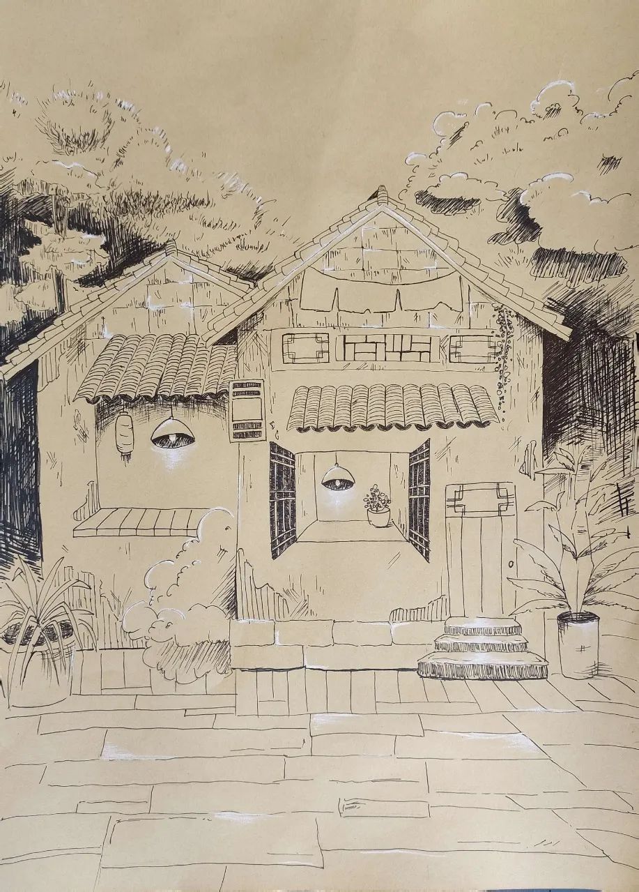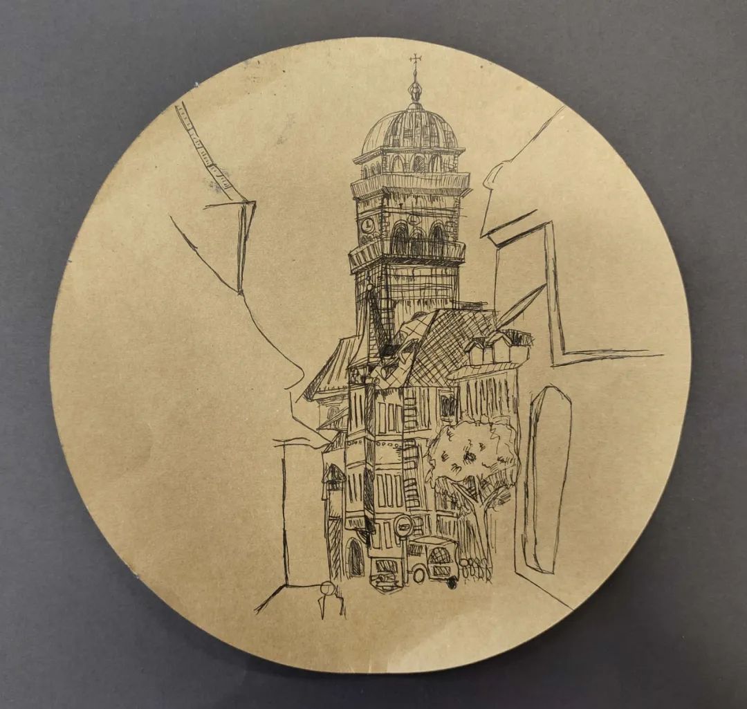 当泛黄的牛皮纸遇上细腻的色粉,时光的纹理便与建筑的风骨撞了个满怀。