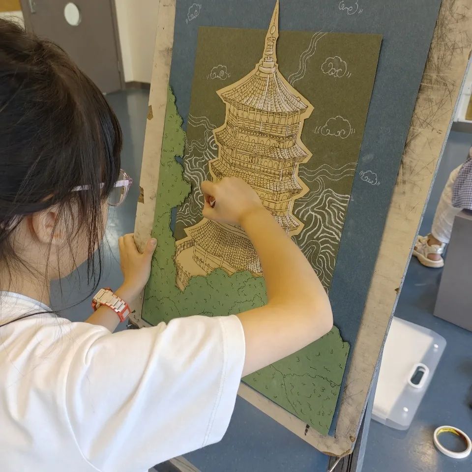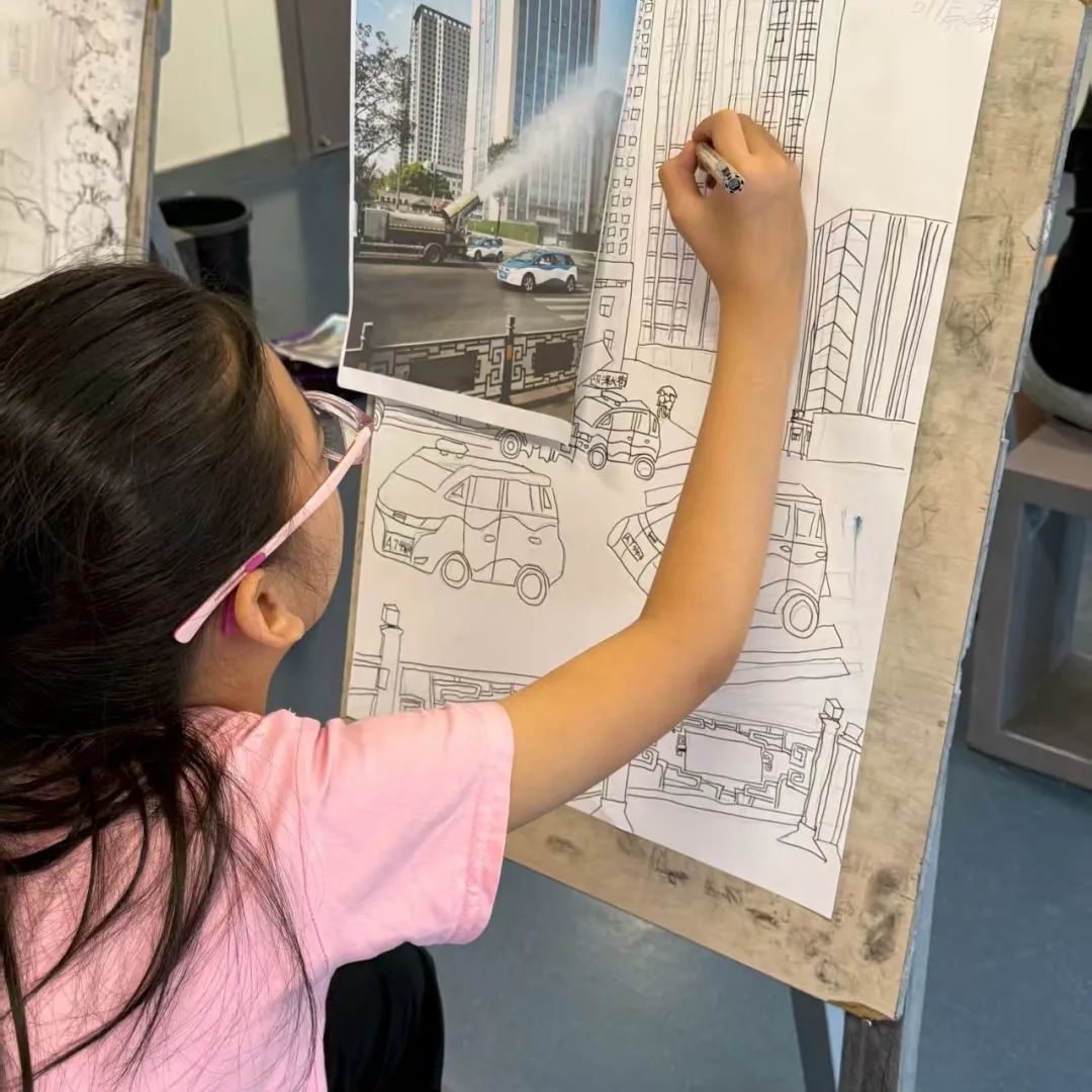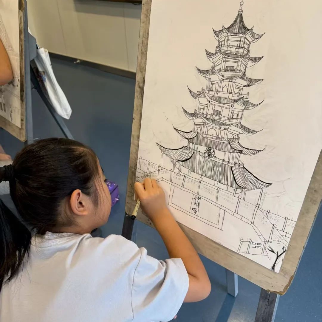集训收尾,学员们交出了令人惊喜的作品:有的以细腻笔触复刻西湖风景,有的走出教室写生少年宫,有的尝试将传统技法与当代创意结合…… 每一幅画,都是10天汗水与灵感的结晶,更是少年艺术观的独特表达。