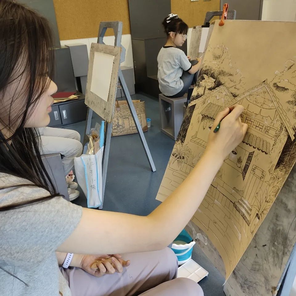 在滨江分中心,社团负责人张纬老师为集训主题注入了新颖思路,经验丰富的徐琰老师与陈思贝老师的双师引领下,学员们更是收获颇丰——不仅深耕传统绘画技法,还大胆尝试水彩、色粉、素描等多元媒介,从笔触的精准控制到色彩的细腻调和,于一笔一划中扎实打磨基本功,尽情探索工具与材料碰撞出的无限可能。