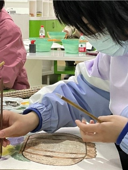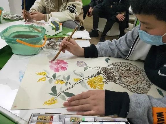 Get了这个有趣的知识点,同学们拿起画笔,开始设计“宋韵版”秋季花篮。在两位专业老师的指导下,有的同学以苏东坡笔下傲霜的菊花作为花篮的主花,斜方插上一束李清照笔下“暗淡轻黄体性柔”的桂花;有的同学则以宋词中的“拒霜花”芙蓉为主题,用彩笔勾勒出浓艳的花瓣。