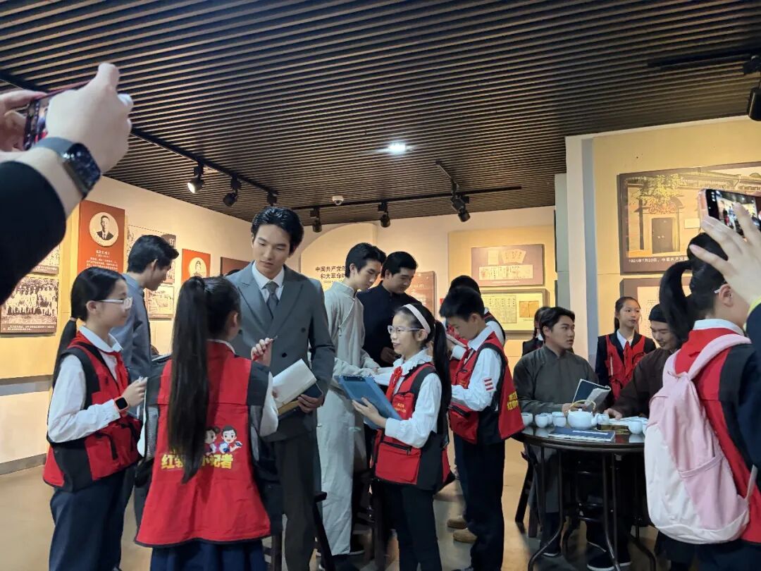 (图为《初心》演职人员正在接受小记者的采访。图片来源:杭州市“红领巾小记者”方霁初。)