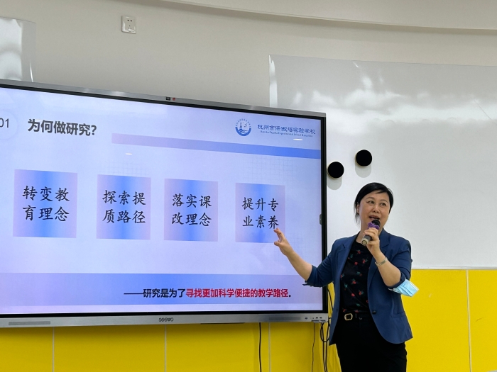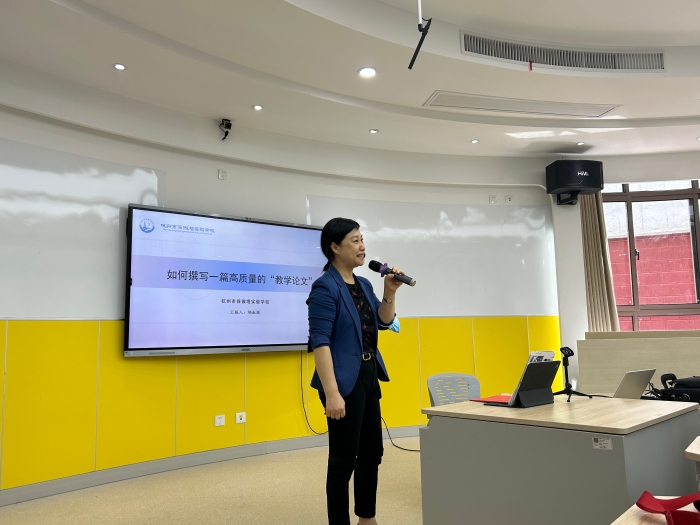 为了更好地提高教学科研水平,助力教职工科研能力发展,4月27日上午,文艺部全体教师在外语楼107室开展论文写作专题培训活动。本次活动邀请了浙江省特级教师、杭州市保俶塔实验学校副校长邬淑颖老师以“如何撰写一篇高质量的‘教学论文’”作主题分享。