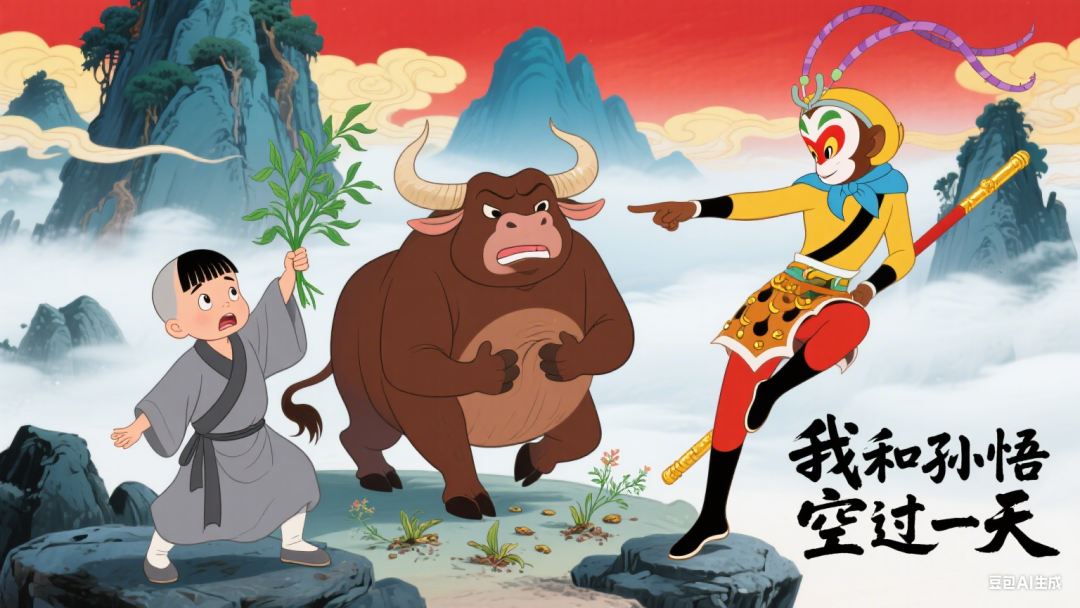 正当我疑惑不解时,不远处传来了一阵脚步声,我来不及想,连忙躲进身后的草丛里。脚步声越来越近,我定睛一看,哎呀,那不是我最敬慕的齐天大圣孙悟空吗?我顿时喜出望外,没想到一下子就让大圣看出了破绽,他大声喊道:“何方妖怪,还不快现身!”我连忙跑出来说:“大圣,是贫僧,想和你一起打妖怪!”“就你?还想和我打妖怪?”大圣话音刚落,我突然感到一阵强烈的震动。嘿,这不是牛魔王吗?可牛魔王那么高大,我怎么可能打得过他呢?正在我思索之际,旁边的大圣已经开始了战斗,他和牛魔王你追我赶,大战了九九八十一个回合也不分胜负。