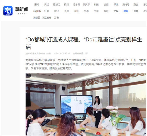 潮新闻、腾讯网、每日商报等媒体报道“Do都城”成人课程